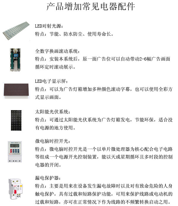 我公司專業(yè)生產(chǎn)公交站臺(tái)、候車亭、不銹鋼公交候車亭、鋁合金公交候車亭、仿古候車亭、公共自行車棚、公共自行車亭、自行車服務(wù)亭、出租車的士亭、公交電子站牌、宣傳欄燈箱、閱報(bào)欄燈箱、崗?fù)ぁ⒅嘎放啤⒙访茻粝洹ED滾動(dòng)燈箱、廣告垃圾箱、戶外大型廣告燈箱等幾十種廣告設(shè)備。